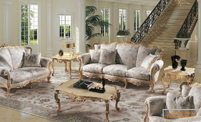 Obývací pokoj kombinuje jídelní kout a kuchyň, které jsou vyzdobeny v moderním stylu. K dispozici je také rekreační oblast, ve které je televizor umístěn. Takový neobvyklý druh interiéru byl dán díky použití stylu fúze v designu prostoru.