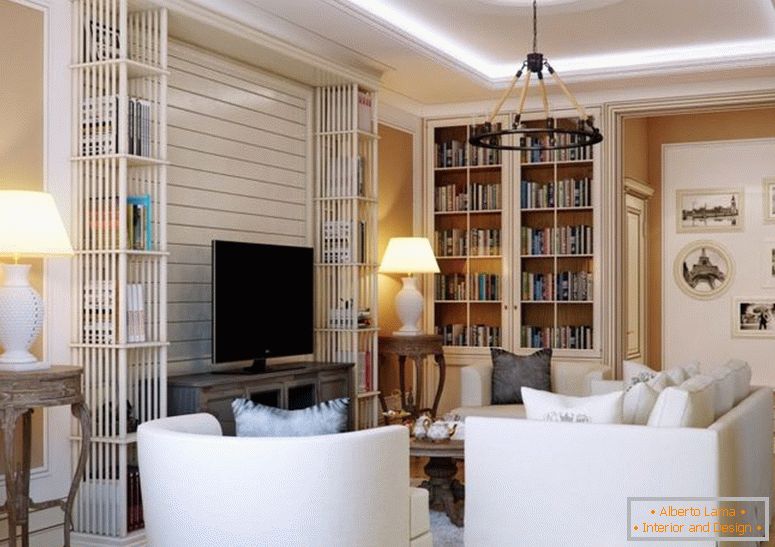 V obývacím pokoji se situace zvrátila. Zde je objemný lustr více než vhodný. Protože se jedná o společenskou místnost, je třeba poskytnout různé scénáře pro zvýraznění. Zástěna nad křeslem, stojací lampa na gauči, zařízení LED vlákna na konferenčním stole dokonale zapadají do interiéru. Konstrukce LED s různými programy vám pomůže relaxovat ve všední den a vyzdobit slavnostní párty.