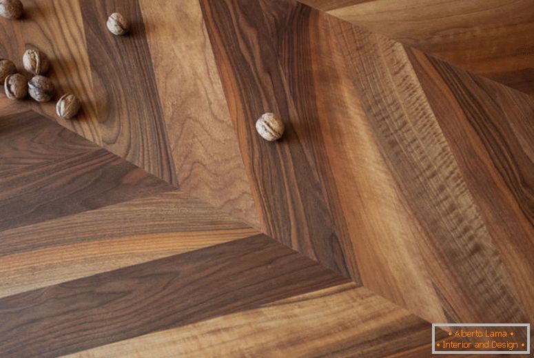 Parkety. Neobvyklé, ale elegantní řešení "sexuální otázky". Vyberte si druhy odolné vůči vodě: teak, modřín, wenge.