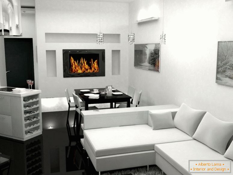 "Nábytkový komplex" několika mobilních modulů je považován za základ této myšlenky. Při jejich změně na místě můžete skrýt buď postel nebo koupelnu při práci s pracovním prostorem.