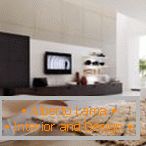 Obývací pokoj je vizuálně přidělen tzv. Zbytkovými zónami, pro kancelář, pro stravování. Základním pravidlem je správné uspořádání nábytku tak, aby byl volný prostor a není tam žádný pocit nepořádek a nepořádek. V místnosti jsou rozdělené hyposkartonové přepážky, obrazovky, lampy.